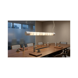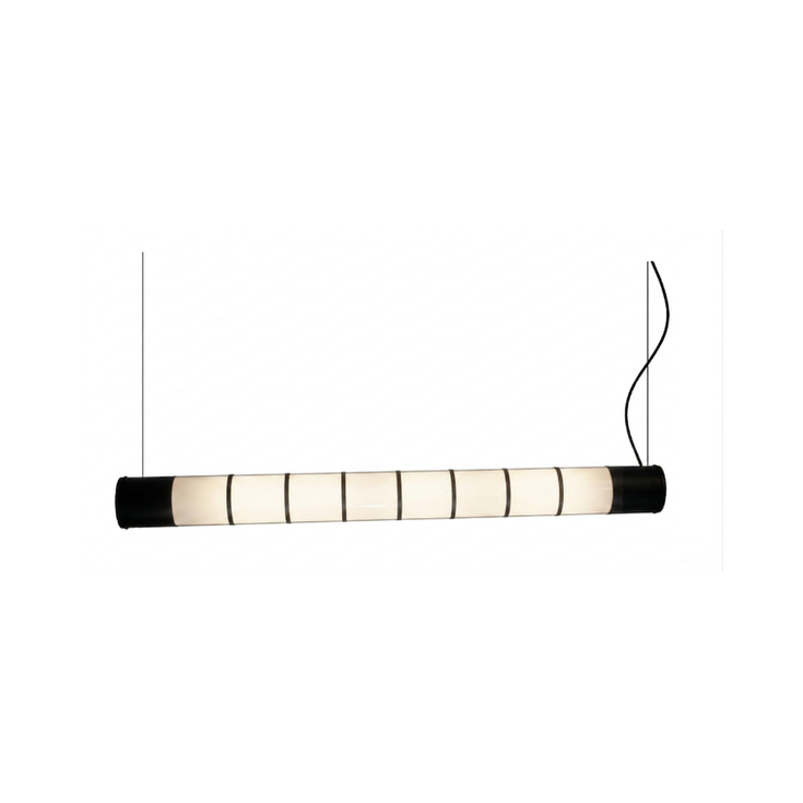 Se caracteriza por una estructura cilíndrica esbelta, compuesta por un difusor traslúcido que emite una luz cálida y uniforme. Este difusor está segmentado por finas líneas horizontales que generan un efecto visual rítmico, evocando la estética del bambú, de donde toma su nombre.