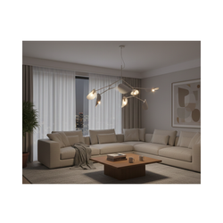 Disponible en versiones de 4, 6 o 7 luces, este modelo se adapta tanto a comedores, livings como a espacios de doble altura. Su estética orgánica y sofisticada lo convierte en un punto focal en cualquier ambiente.