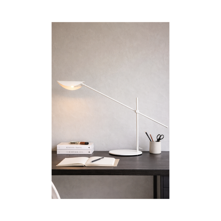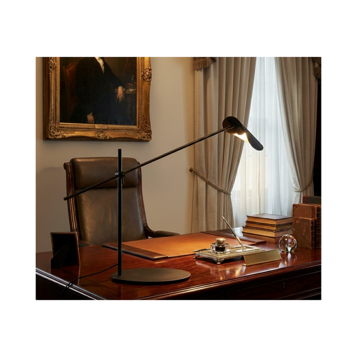 Sutil y expresiva, la versión de mesa de MARANTA conserva la esencia escultórica de la colección en una escala contenida. Ideal para escritorios, mesas de trabajo o rincones de lectura, esta luminaria combina funcionalidad y presencia estética. Su brazo orientable permite modular la dirección de la luz, adaptándose a diferentes usos sin perder elegancia.