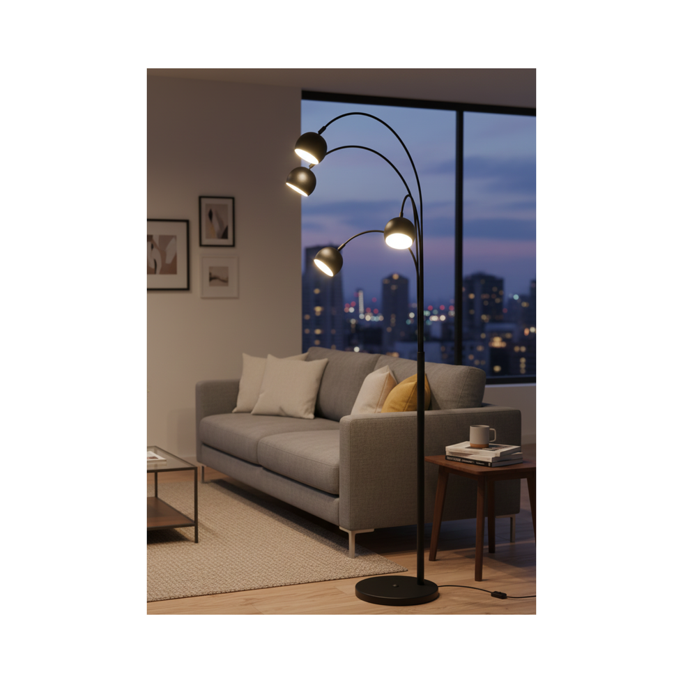 La Miro P4L Met es una lámpara de pie de estilo contemporáneo que combina una estructura metálica estilizada con cuatro cabezales esféricos orientables, logrando un diseño moderno y versátil. Su composición de múltiples luces permite generar una iluminación equilibrada y direccional, ideal para livings, comedores o espacios de trabajo donde se busca funcionalidad con un toque distintivo.
